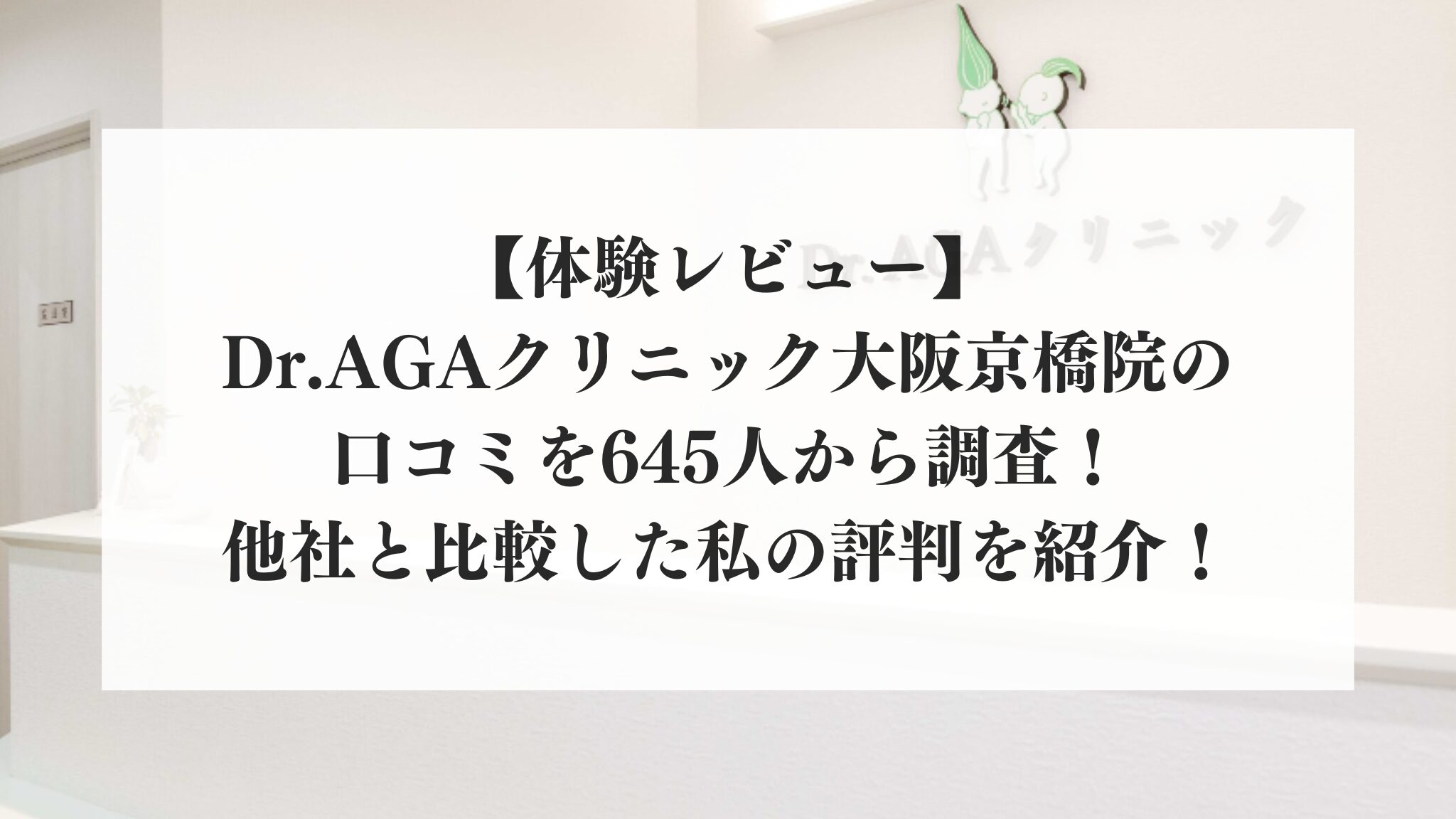 本記事ではDr.AGAクリニック大阪京橋院の口コミを645人から調査した結果について、実際にクリニックで治療をした私が徹底紹介します。