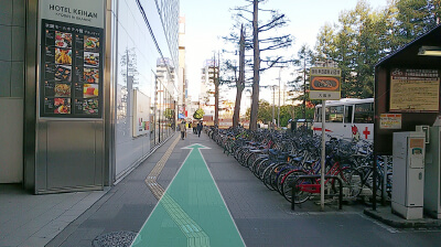 ②JR線京橋駅を出ると、京阪線京橋駅が見えてくるので、そのまま駐輪場に向かいます。