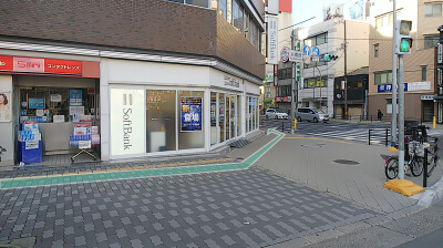 ⑤「SOFTBANK」と横断歩道が見えてきたら、「SOFTBANK」を左折します。