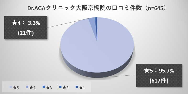 最初にDr.AGAクリニック大阪京橋院に対する約650人の口コミを調査した結果の全体像を俯瞰しましょう。(引用:Googleマップ)