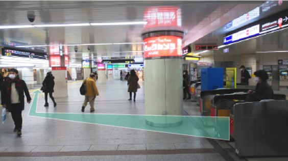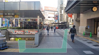 ④地上に出たら、迂回して、高島屋沿いの歩道を道なりに進みます。