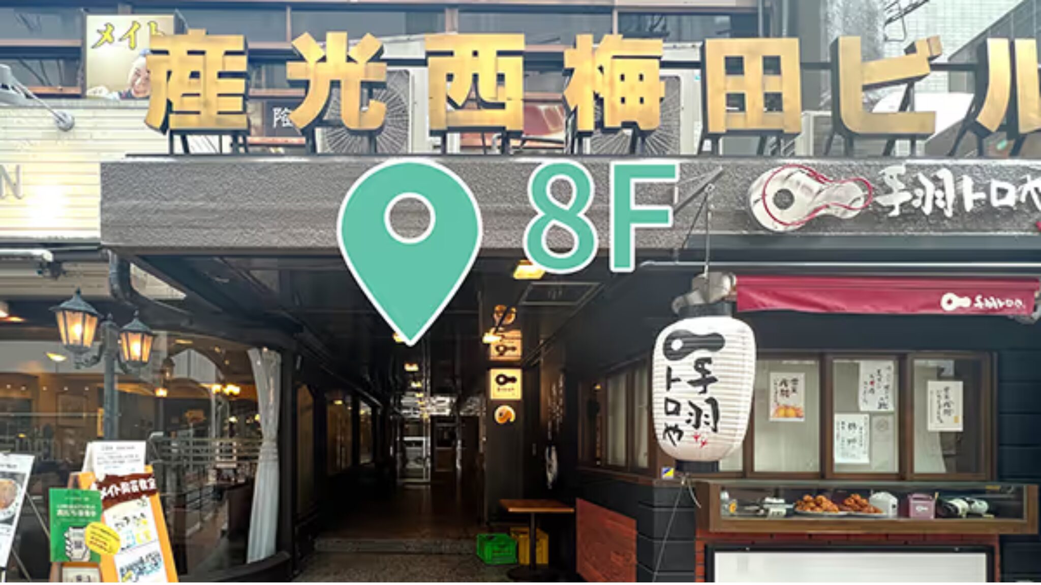 ⑦「産光西梅田ビル」のエレベーターを7Fで降り、正面の階段で8Fまで上がりましょう。