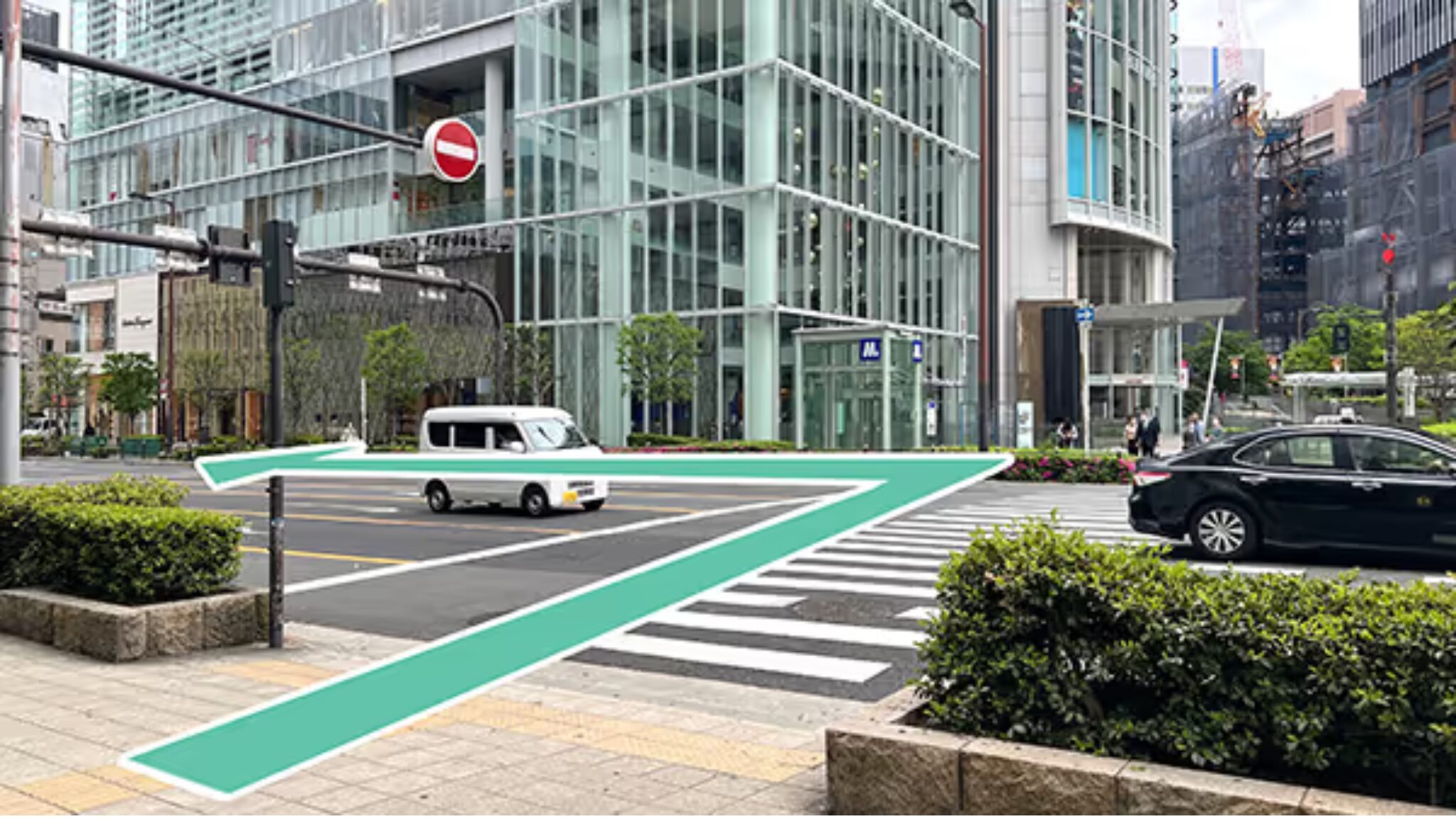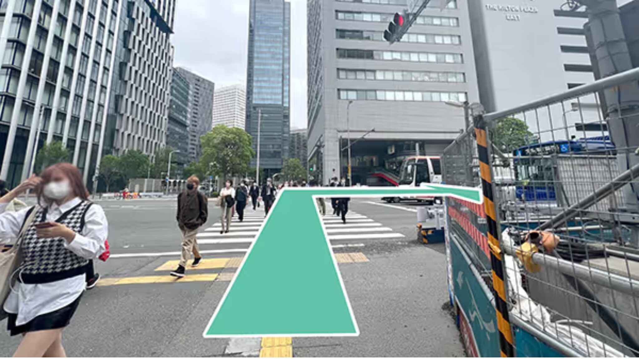 ③左手の第一生命ビル、ヒルトンプラザイーストがある交差点を渡り右折します。