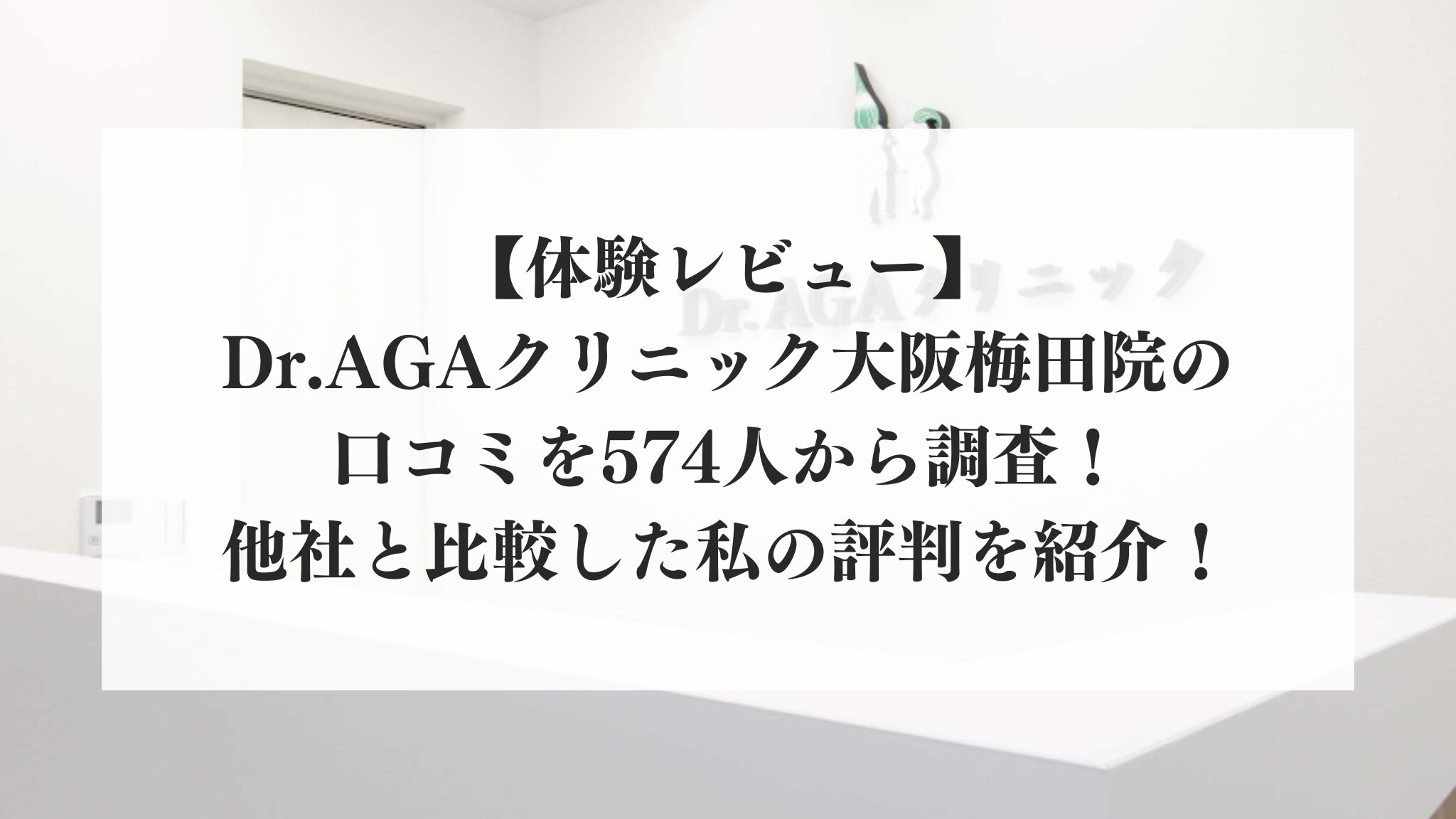 本記事ではDr.AGAクリニック大阪梅田院の口コミを574人から調査した結果について、実際にクリニックで治療をした私が徹底紹介します。