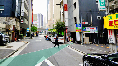 ⑤右手にパーキングが見えてきますので、パーキングの左にある「FAD15ビル」の9階に当クリニックがあります。