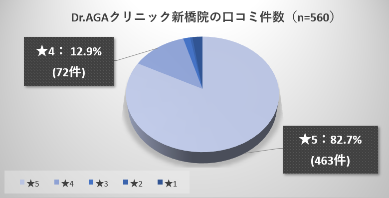 最初にDr.AGAクリニック新橋院に対する約600人の口コミを調査した結果の全体像を俯瞰しましょう。(引用:Googleマップ)