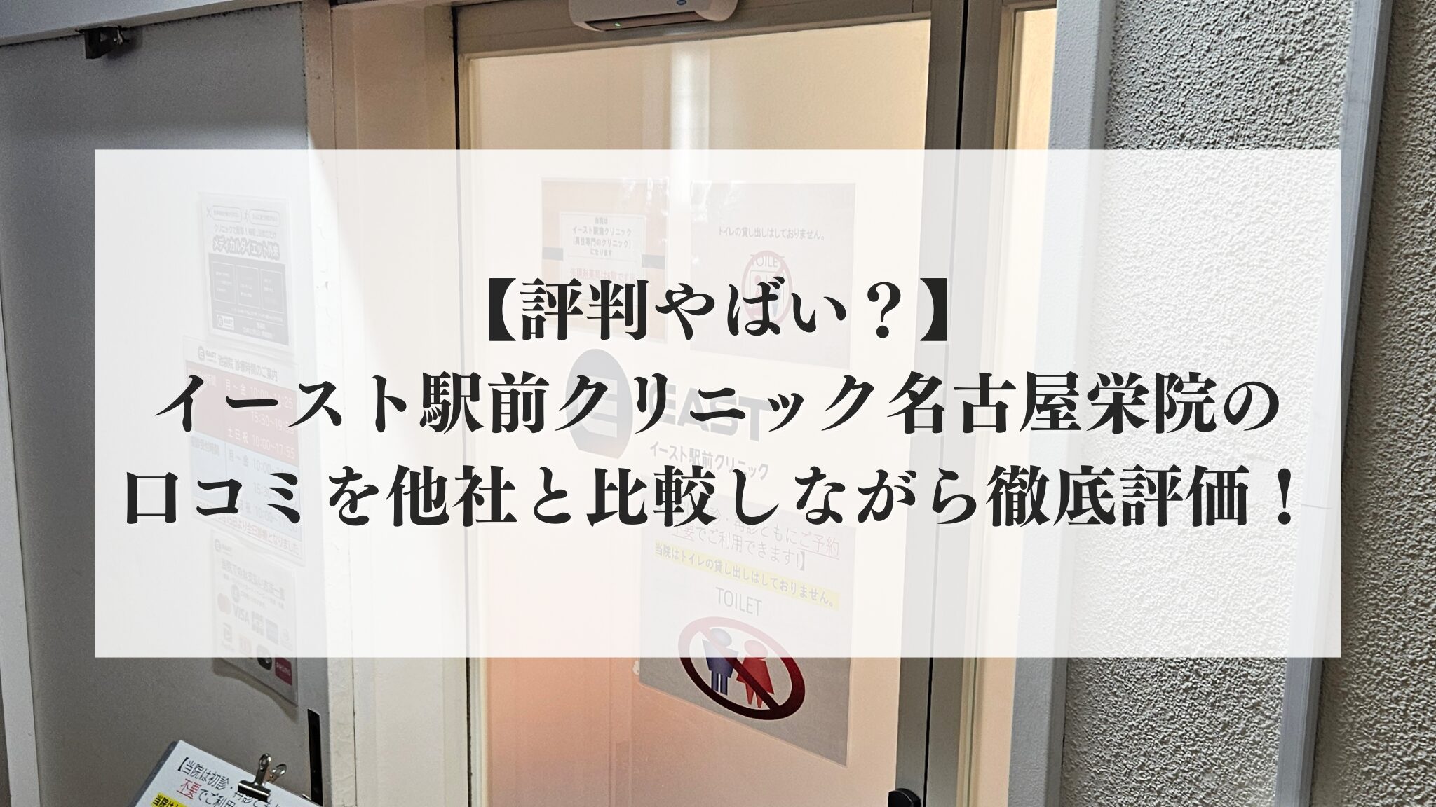 本記事ではイースト駅前クリニック名古屋栄院の口コミ・評判について、実際にクリニックのカウンセリングと診察を受けた私が徹底紹介します。