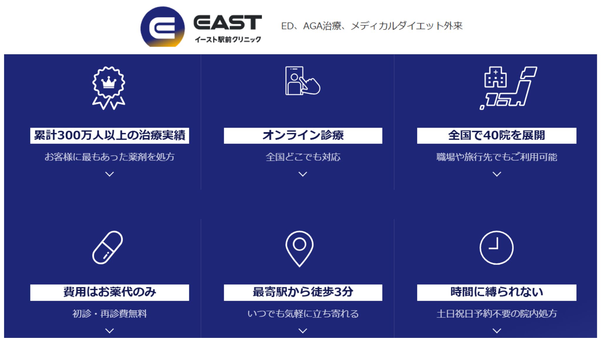 イースト駅前クリニックの公式サイトはこちら(ED用)