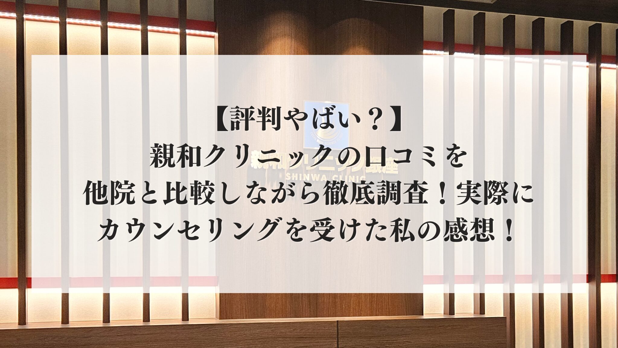 なおネット上の口コミだけでなく、実際に親和クリニックのカウンセリングを受けて感じた私の体験談を元に執筆していくので、信憑性も高いはずです。