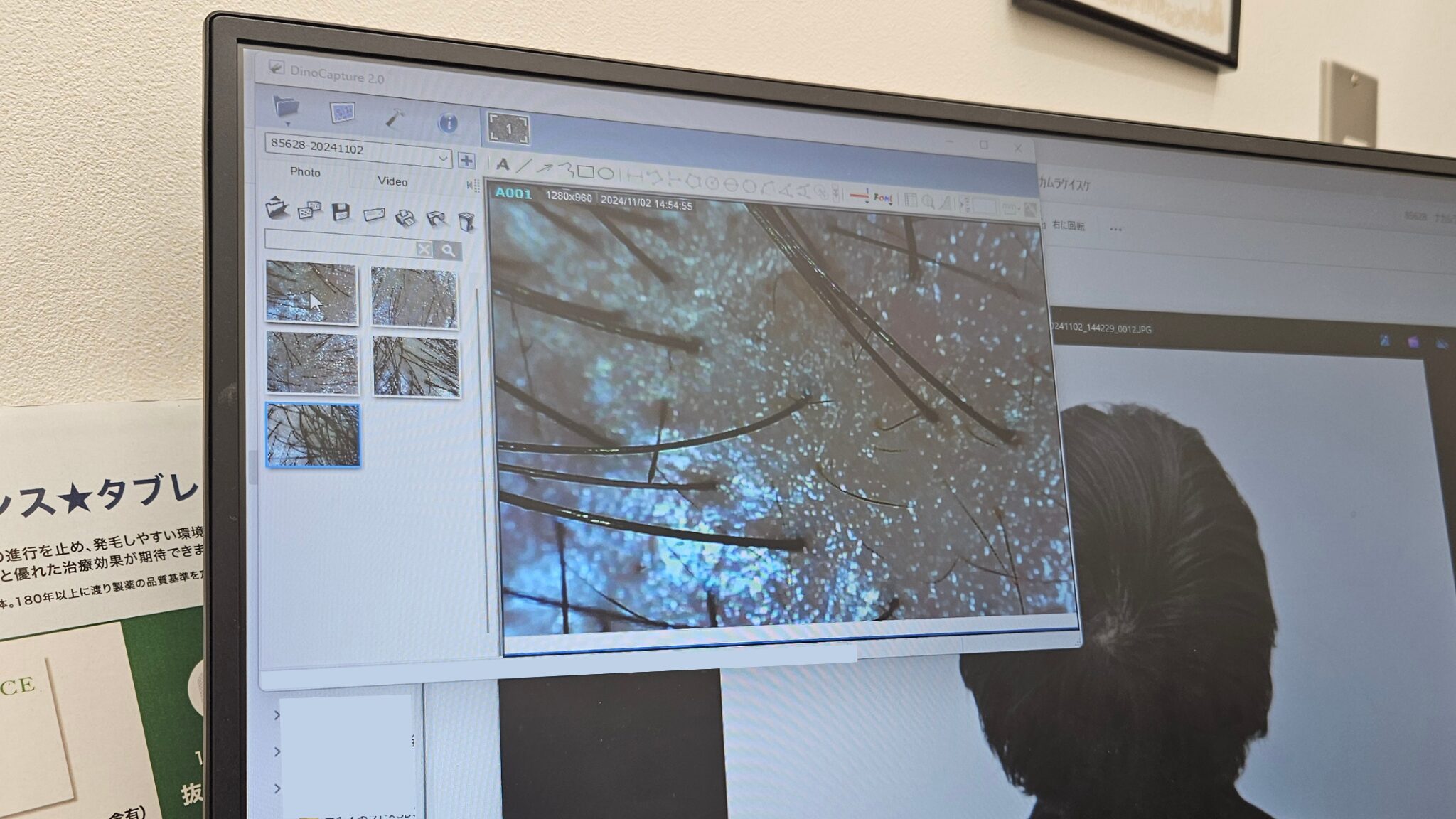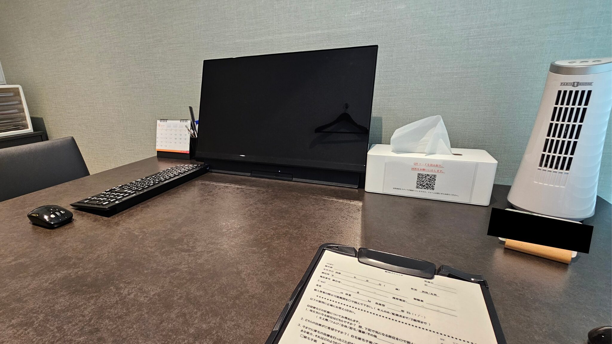落ち着いた空間で問診票を書き、その後に血圧測定と写真撮影がありました。