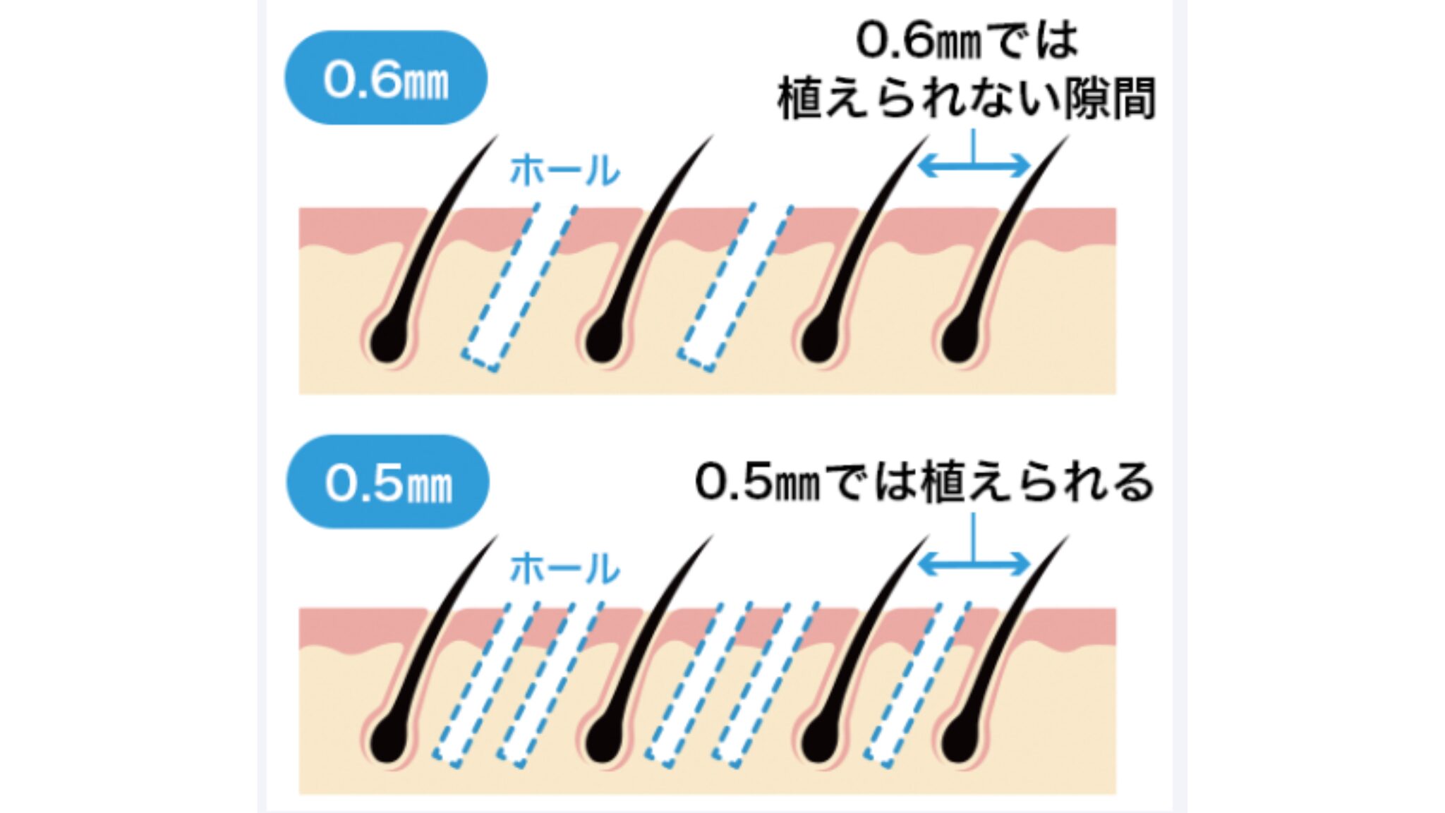 パンチブレードが細くなったことで高密度にホールが作れ、精密なデザインが可能になりました。また、皮膚への負担が軽減され、術後の回復時間も短縮。さらに既存毛のダメージが最小限で、傷跡も目立たちません。