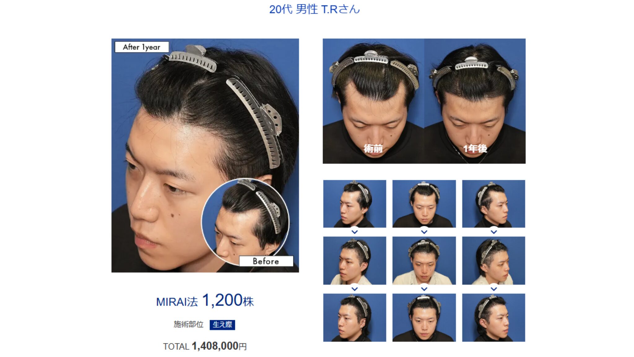- こめかみ部分の植毛には積極的ではなさそう