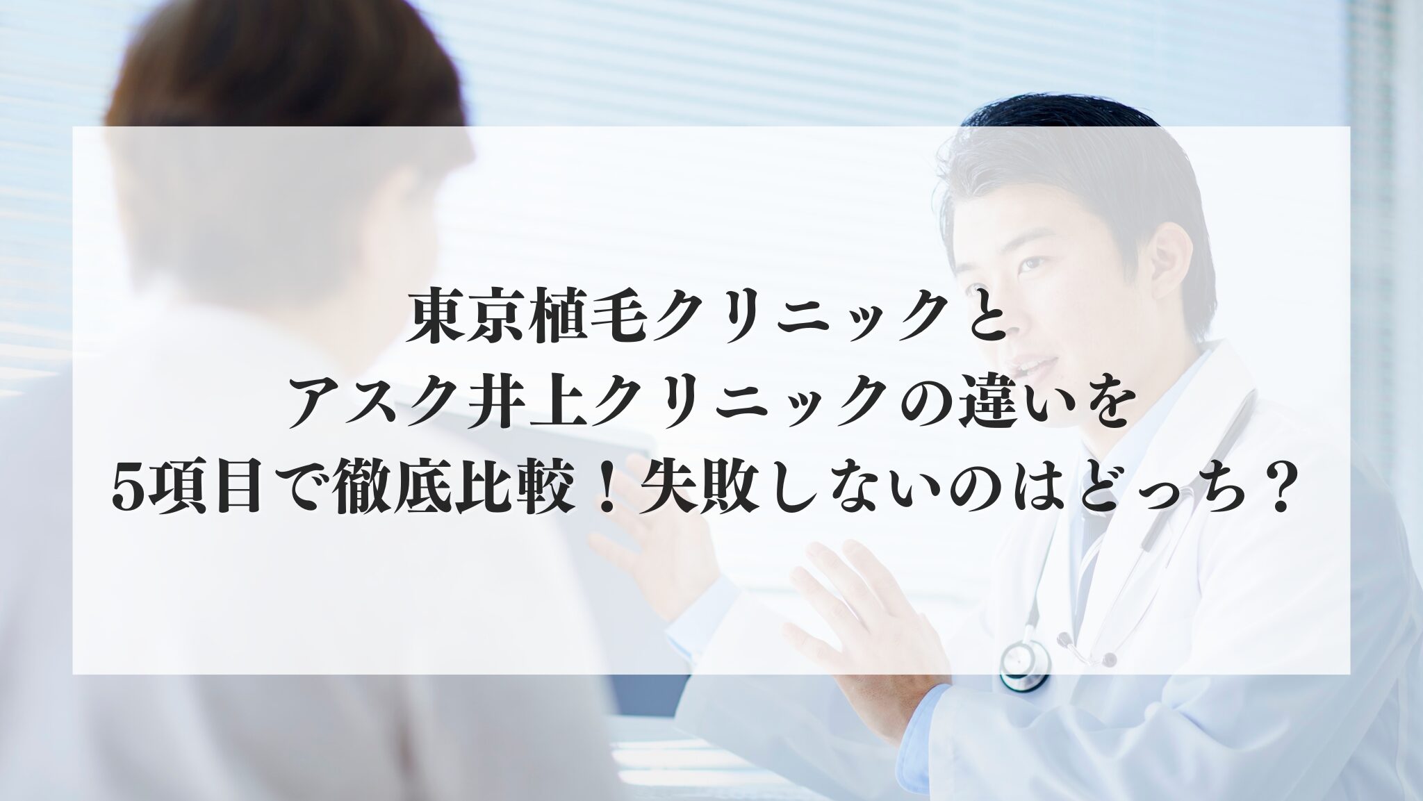 この記事では、東京植毛クリニックとアスク井上クリニックの違いを5つの視点から比較して解説します。