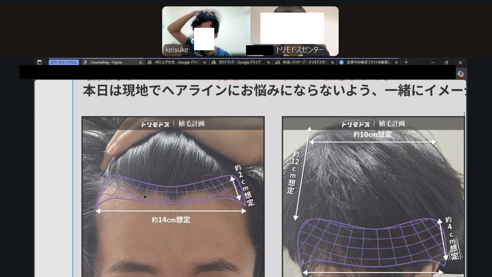 写真で分かりづらいところは、実際にzoomの画面で生え際を見せることで、正確なカウンセリングを心掛けてくれました。