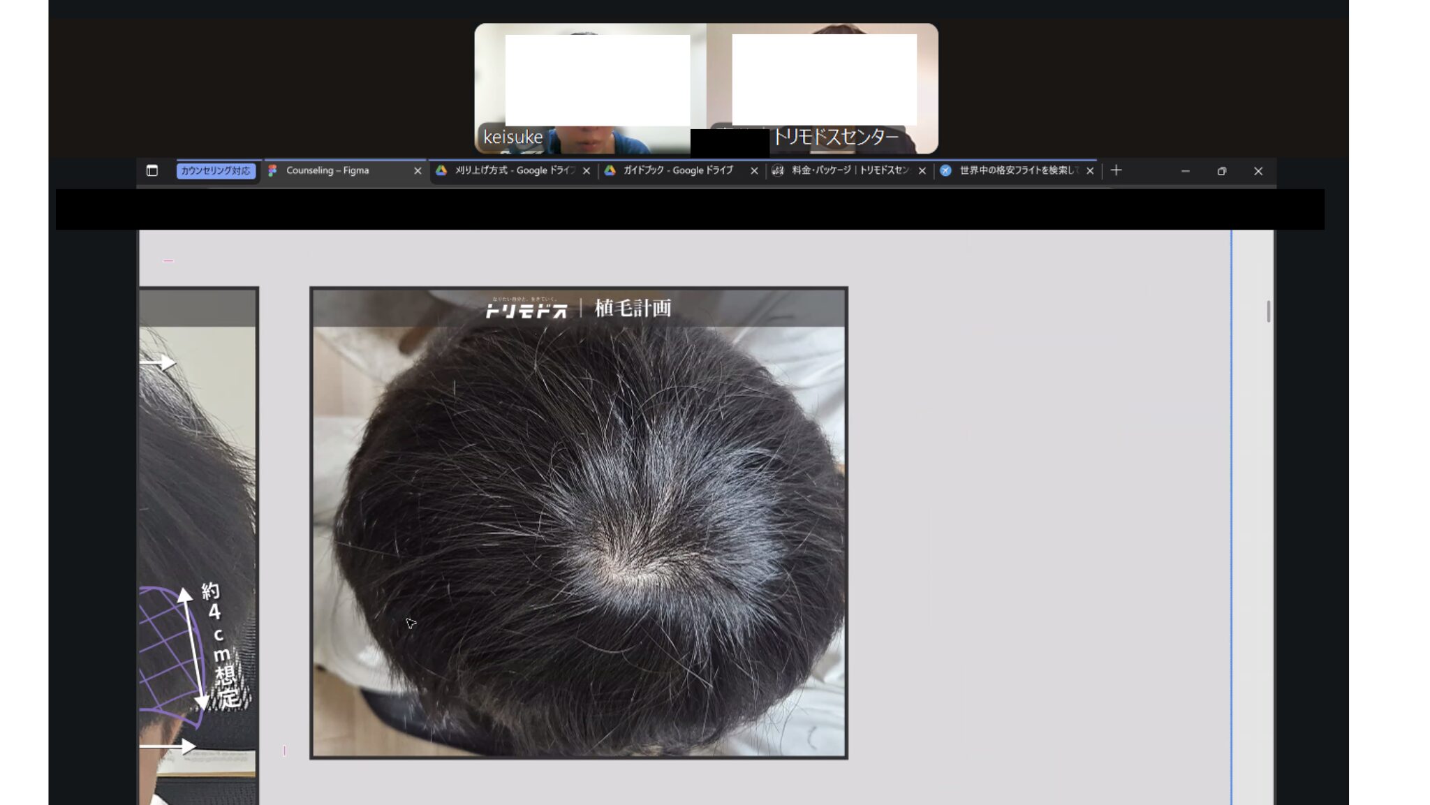 トリモドスセンターのカウンセリング予約を取ると、まずは頭部の写真を送り、カウンセリングまでに植毛計画の素案を作ってくれます。