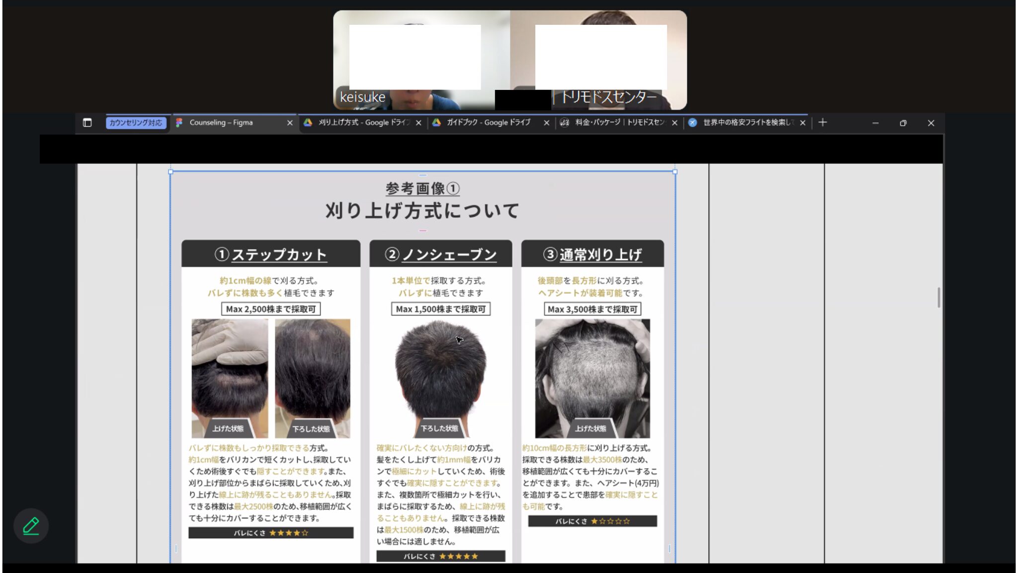 これまたこの方が優しくて話しやすいんですよね。私の頭部の写真を見ながら、AGAの進行度合い、必要な株数、デザインなど、細かく説明してくれます。